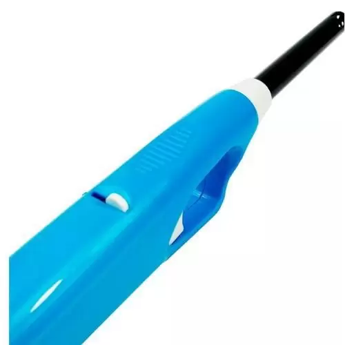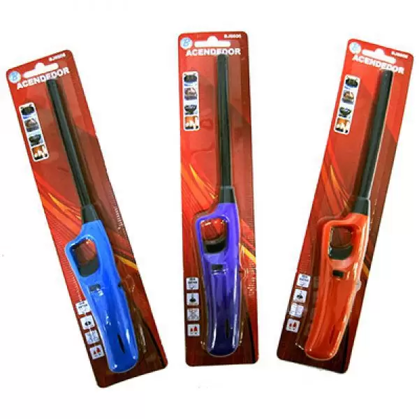 Acendedor multiuso a gás, com trava de segurança e regulador de chama.