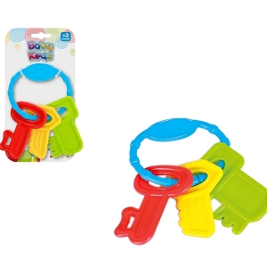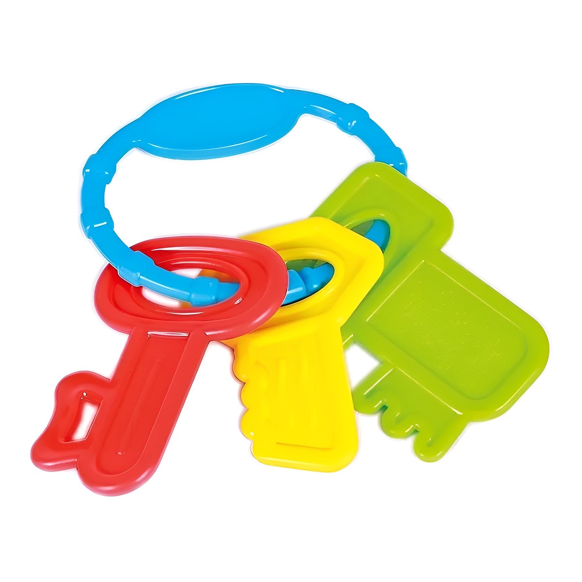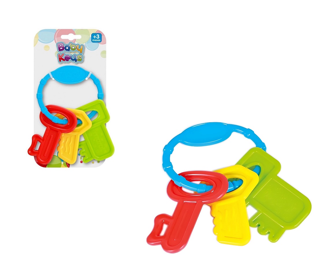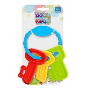 São 03 chaves coloridas em modelos e texturas diferentes. Feitas em material atóxico, indicadas para a primeira infância desenvolvendo a motricidade. Alivia o desconforto da primeira dentição.