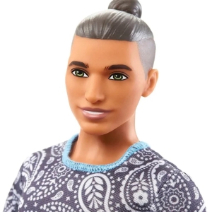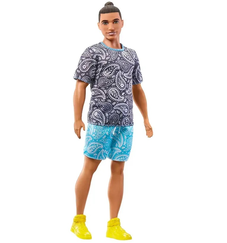 Itens Inclusos: Boneco Ken Fashionistas, usando roupas superior e inferior removíveis e sapatos.