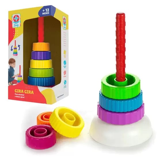 Contém na Embalagem – 6 rodas coloridas, 1 haste central e 1 base