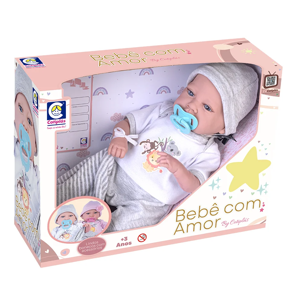 A Boneca Bebê com Amor by Cotiplás Menino é perfeita para momentos de carinho e diversão. Com um design fofo e delicado, este brinquedo possui vinil macio, trazendo uma sensação suave ao toque, como pele de bebê. A boneca é ideal para incentivar o cuidado e a imaginação das crianças, sendo um ótimo presente para meninos. Além disso, é fabricada com materiais de alta qualidade, garantindo segurança e durabilidade para as brincadeiras. Um companheiro ideal para as horas de diversão e afeto!
