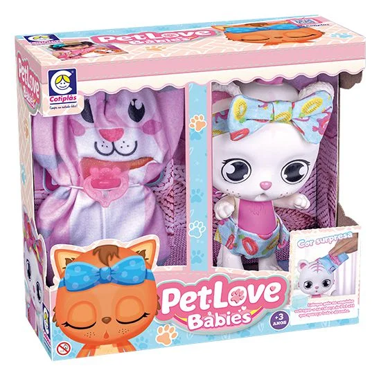 Boneca Pet Love Babies Tigre Cor surpresa saco dormir chupeta Linda boneca toda em vinil acompanha saco de dormir e chupeta. Coloque gelo no saquinho e esfregue-o na cabeça do pet até que apareça todo o desenho.