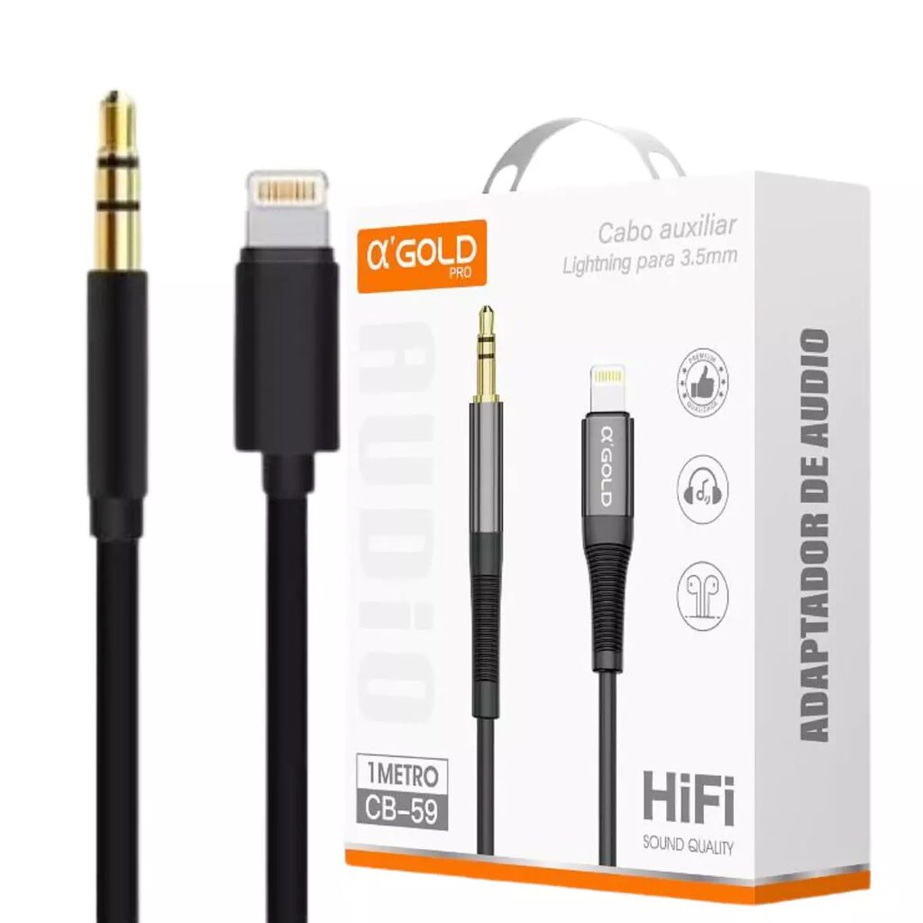 Conexões: Lightning (macho) para P2 3.5mm (macho)