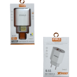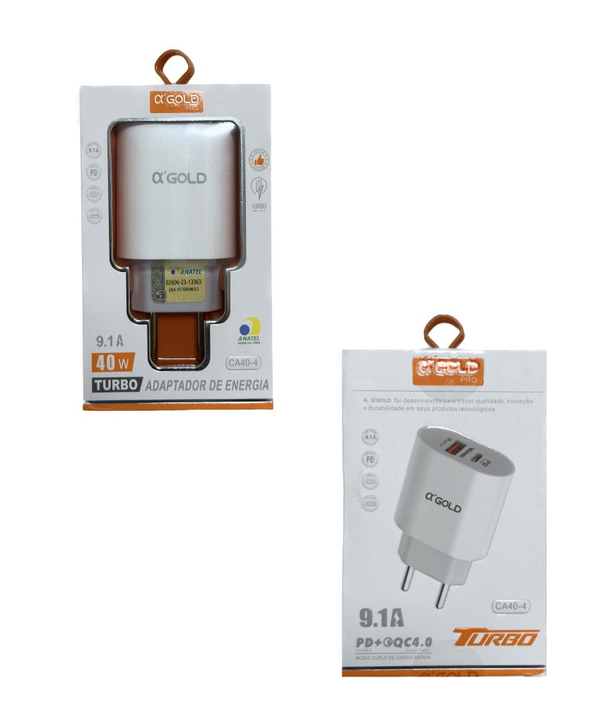 01 Adaptador de energia com 1 entrada USB e uma entrada usb C .