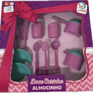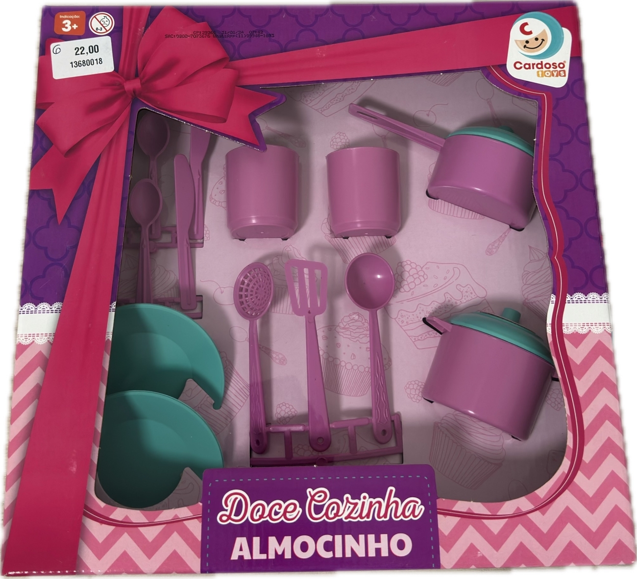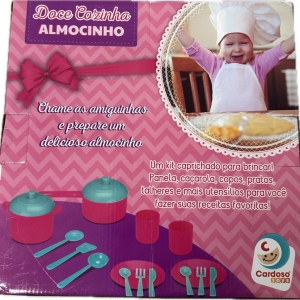 Doce Cozinha Almocinho a brincadeira dos pequenos vai ficar ainda mais completa e divertida. Um jogo completo de peças de cozinha que incluí tudo que é necessário para criar as melhores comidinhas. As crianças vão poder brincar de forma criativa e segura, com seus próprios utensílios iguais aos da mamãe! A fantasia de criar novas receitas será o motivo para horas de muita diversão, socialização e integração entre as crianças.
