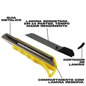 O Estilete Profissional com Corpo Injetado é a ferramenta ideal para diferentes atividades. Perfeito para desencapar fios até cortar papel de parede, ele é uma peça versátil e funcional. Possui corpo injetado e lâmina em aço especial, tornando o uso mais preciso e prático. Além disso, possui Bloqueio automático, antiderrapante, aderência em elastômero e definição da lâmina.