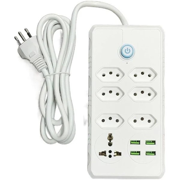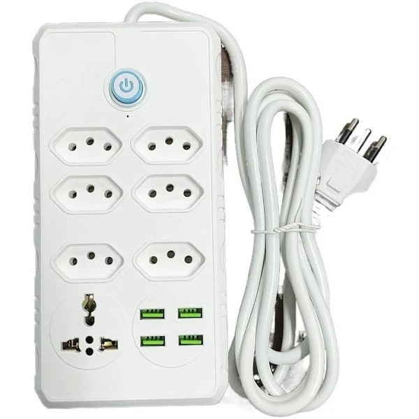 Extensão Elétrica 7 Tomadas Régua Bivolt C/ 4 Usb Cabo 2m