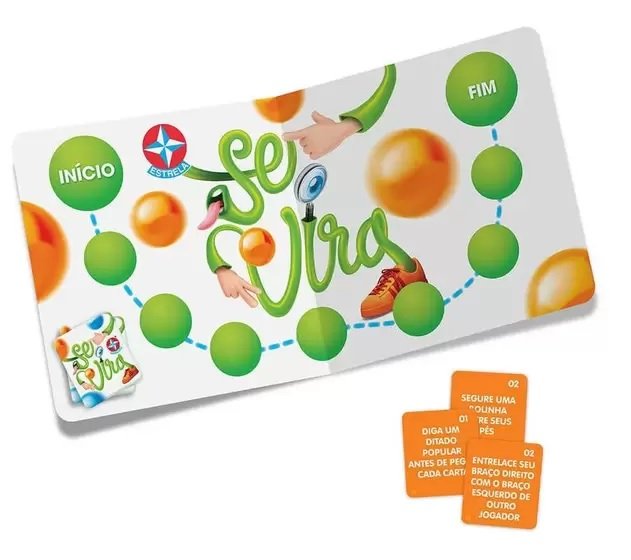 Equilibre a bolinha embaixo do queixo, ponha a carta sobre a sua cabeça! Faça atividades são acumulativas. Contorça-se, pois para conseguir realizar todas as ações e chegar ao final do tabuleiro, você terá que mostrar que sabe se virar!