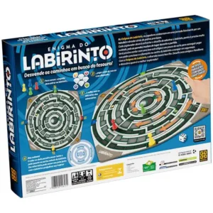 Desvende os caminhos em busca do tesouro! No Enigma do Labirinto, os jogadores embarcam em uma jornada fascinante por um tabuleiro circular atrás de pedras preciosas. Cada explorador deverá enfrentar o desafio de adentrar o labirinto, porém é preciso muito cuidado, pois as paredes mudam de lugar durante a partida. Será preciso contar com uma boa estratégia e um pouco de sorte para conseguir pegar sua pedra preciosa e o diamante no centro do labirinto e escapar em segurança. Com o Enigma do Labirinto, a diversão nunca tem fim. Desafie seus amigos e familiares e descubra quem é o melhor explorador! Incrível tabuleiro com anéis giratórios! A partir de 7 anos 2 a 4 participantes Tempo estimado de jogo 30 minutos