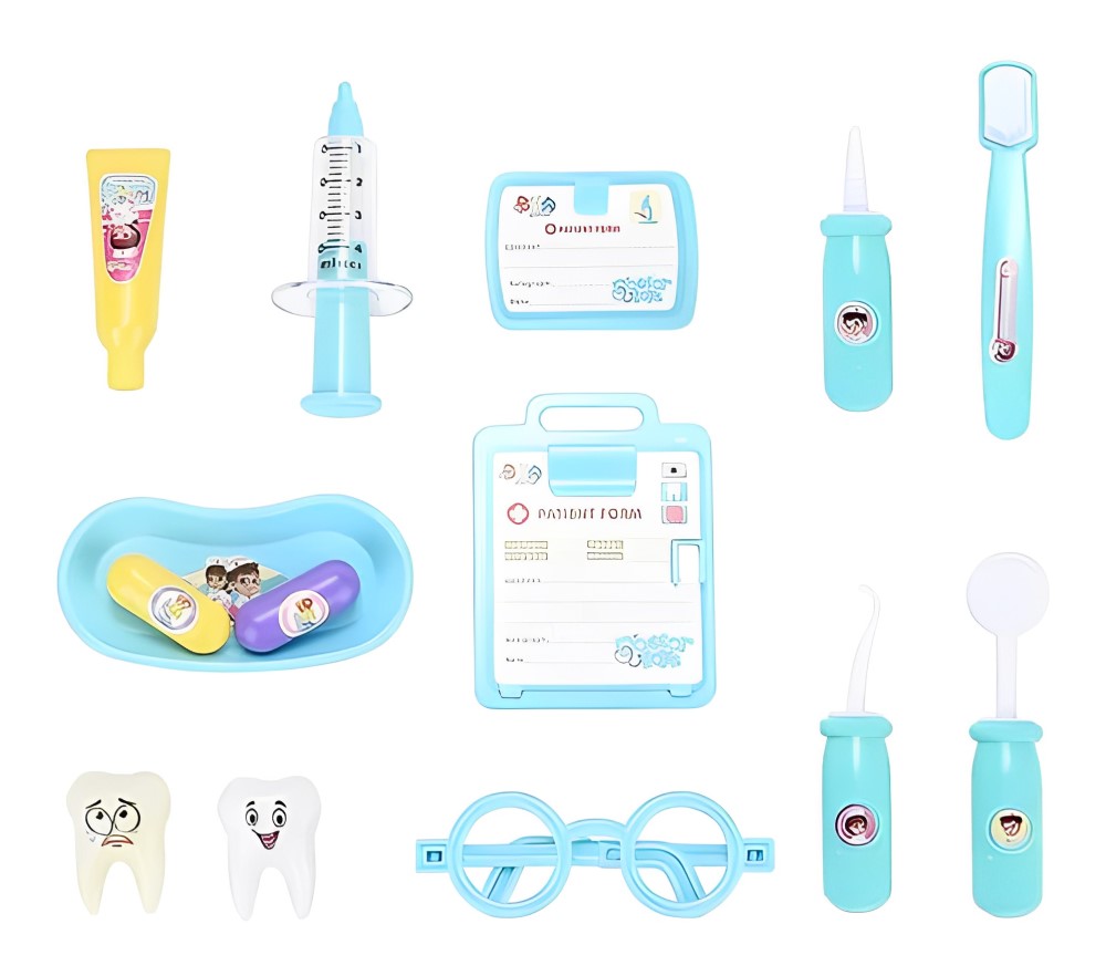 O Kit é composto por 14 acessórios, tem design moderno e colorido em plástico resistente.