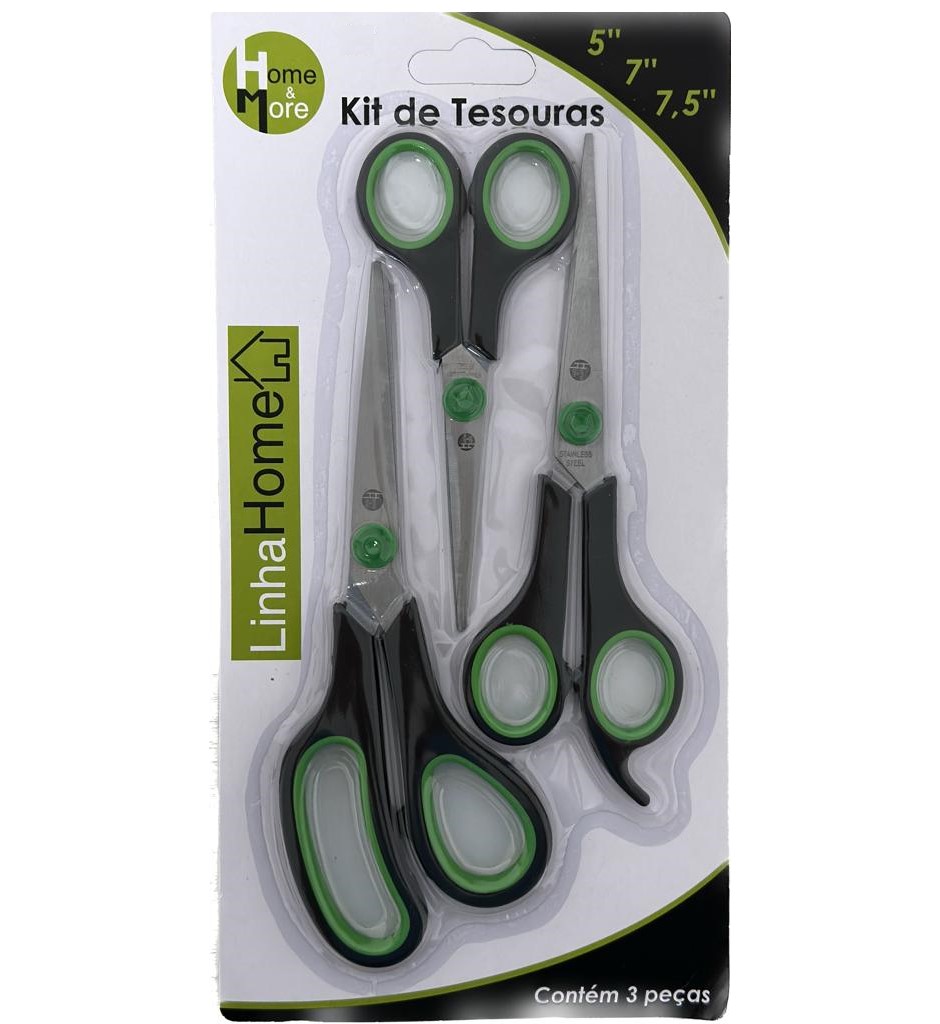 O kit 3 tesouras é a linha ideal para satisfazer todas as suas necessidades manuais.