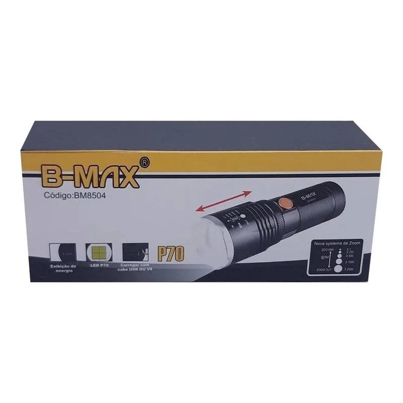 01 Lanterna Recarregável Led Super Brilhante P70 168000W b-max – BM8504.