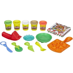 Play-doh festa da pizza com 5 potes .Que tal criar divertidas pizzas com play-doh?É só abrir a massa, adicionar queijo e todos os ingredientes que a criatividade dos pequenos permitir.E depois, só falta fatiar sua pizza e colocá-la na caixa de pizza para fazer uma entrega delivery para seus amigos.