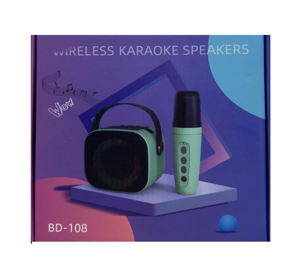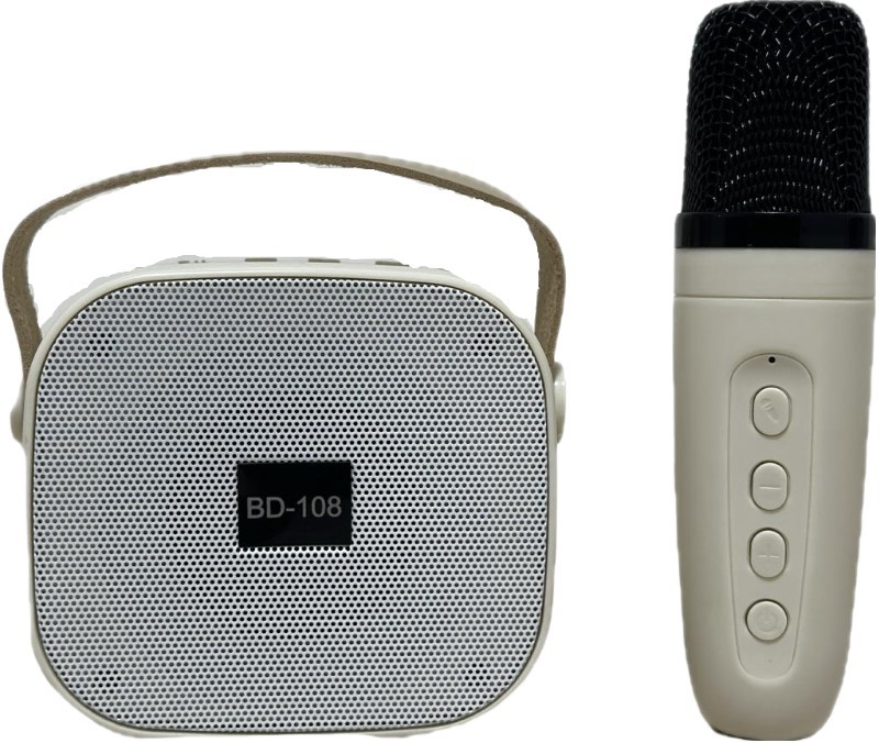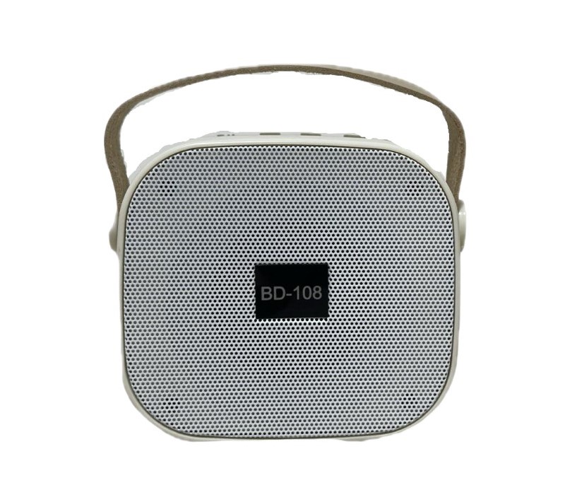 Mini Caixa De Som Com Microfone BD 108, hi-fi potente de alta qualidade, clareza e saída de som limpa, para longo alcance e com ótimos graves, de fácil instalação. Design compacto e alça para transporte. Bateria interna de excelente autonomia, recarregável. Com conectividade bluetooth, Entrada USB, Cartão Micro SD, Aux, Rádio FM integrado, ideal para Pcs, Notebooks, Smartphones, Tablets, Tvs, MP3 e MP4 Players.