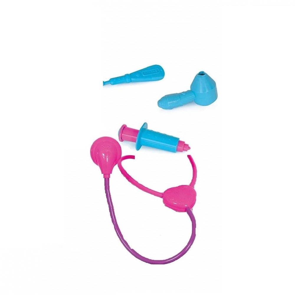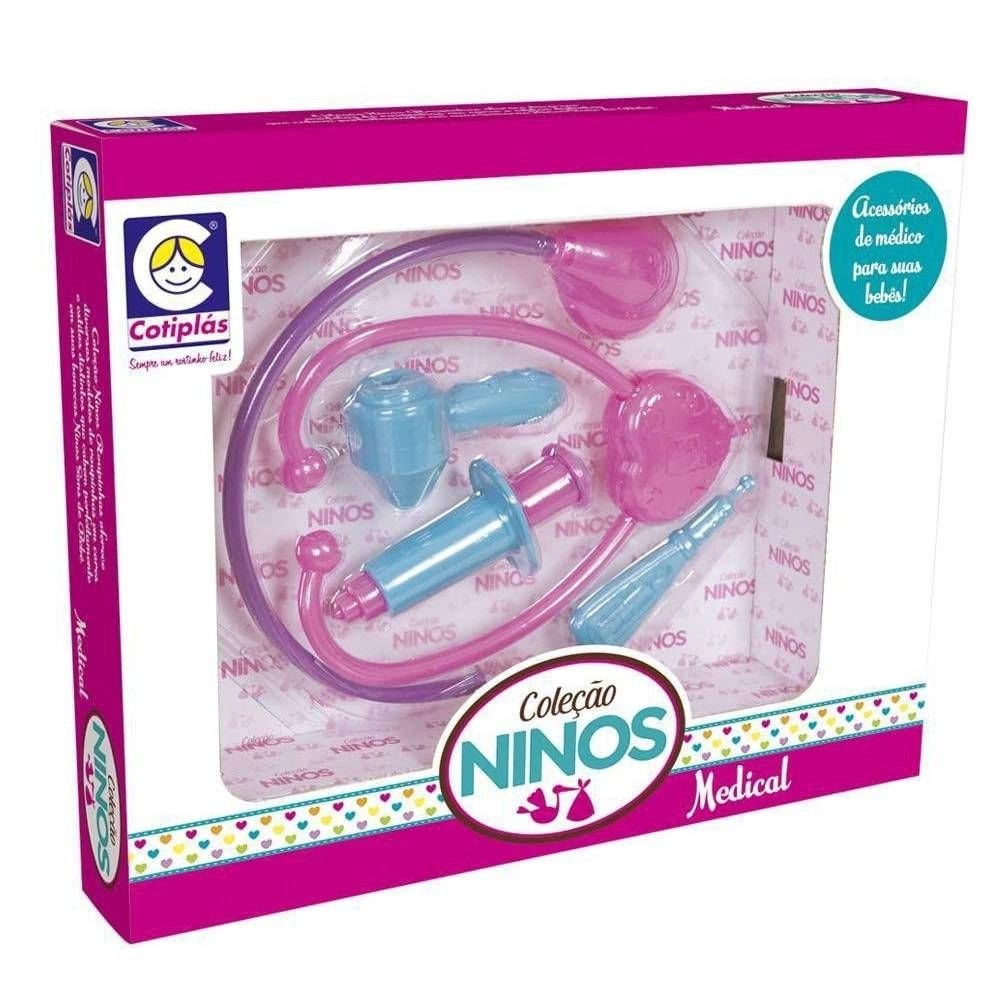 Ninos Acessórios Médicos 2222 traz acessórios de médico, acompanha o estetoscópio, otoscópio, injeção e termômetro!