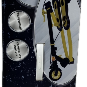 – Rodas em poliuretano: dianteira 120 mm, traseiras 80 mm