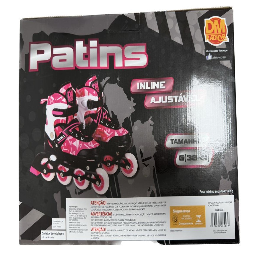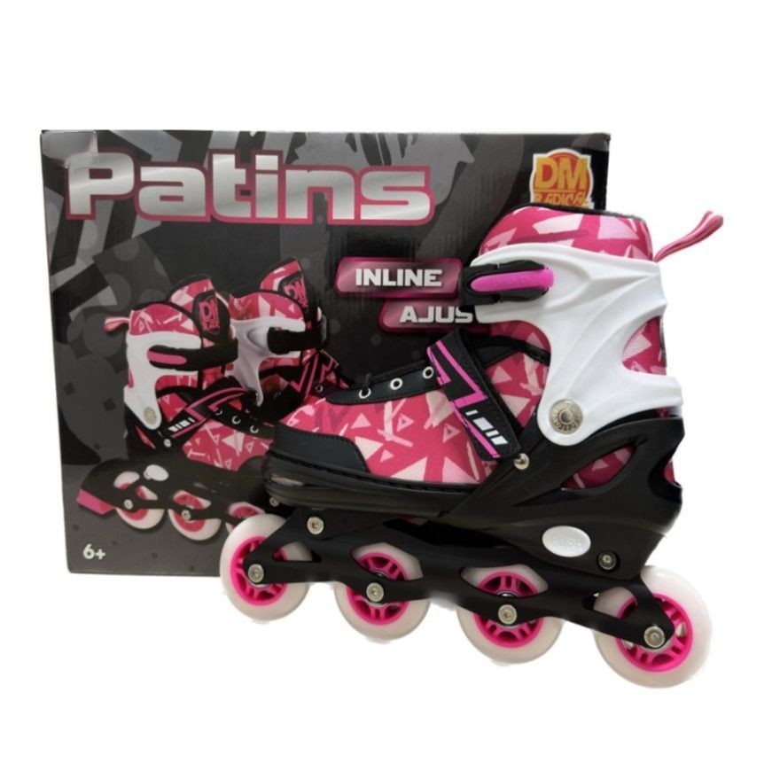 Patins Inline , com regulagem de tamanho, trava na altura do tornozelo e espuma EVA interna garantindo conforto e firmeza.