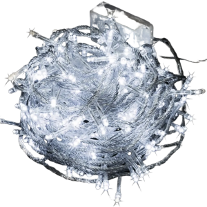 Cordão led com 100 lâmpadas de LED’s fixos.