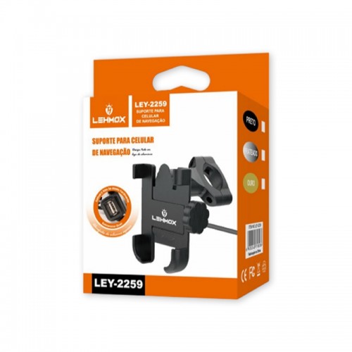 O suporte para celular de moto LEY-2259 da Lehmox é ideal para motos, possui braçadeiras em metal compatíveis com celulares de telas entre 3.5 e 6 polegadas (até 90mm de largura).