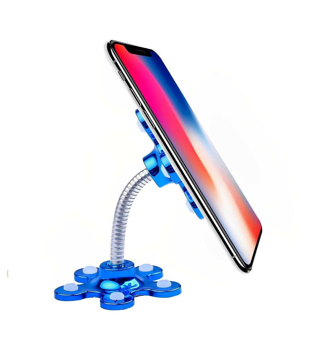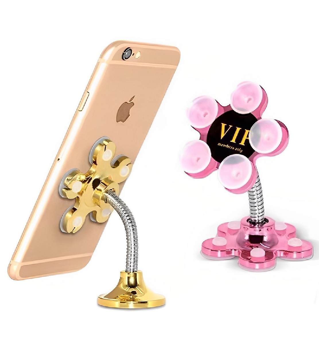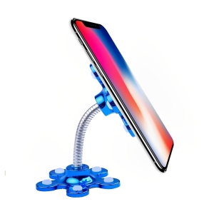 O suporte tem a forma de uma flor, com cada pétala tendo uma pequena ventosa. Suporta o telefone com mais firmeza com apenas 5 pequenas ventosas o que impede que ela escorregue.